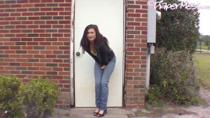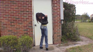 Uh-oh! Nikki has to pee so bad! She’s in a public park and it took her forever just to get to the restroom in her high heels! But it’s a single stall restroom and now that she’s there she finds it occupied!